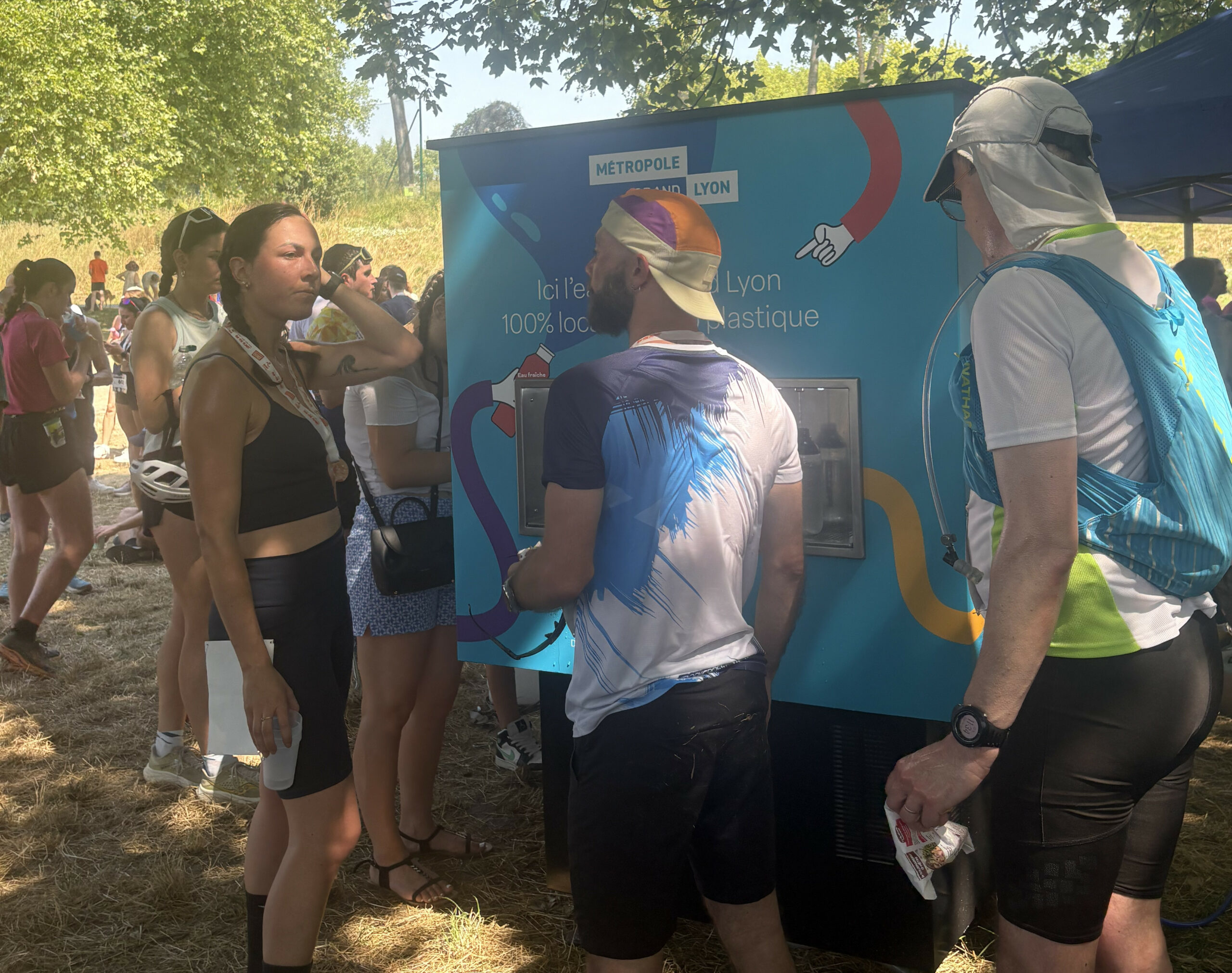 Son écran compteur valorise chaque bouteille plastique évitée et sensibilise les coureurs, les spectateurs, les bénévoles.